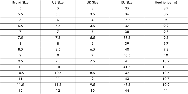 Available Sizes: US 5 to 12