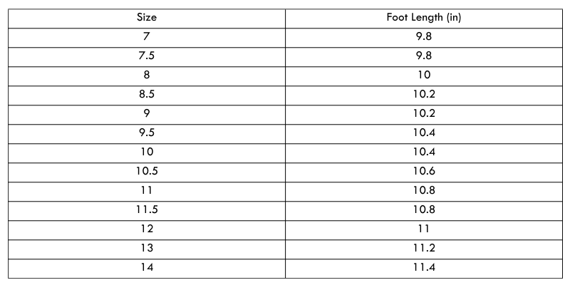Size Chart (inches):