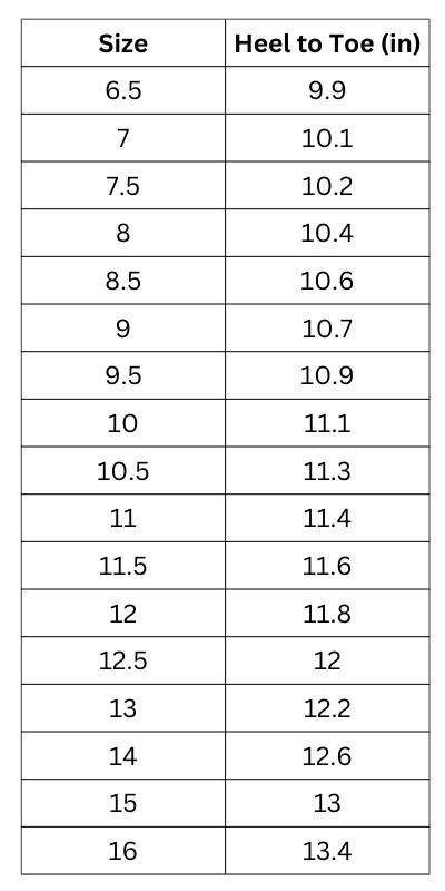 - Available Sizes: US 6.5 to 16